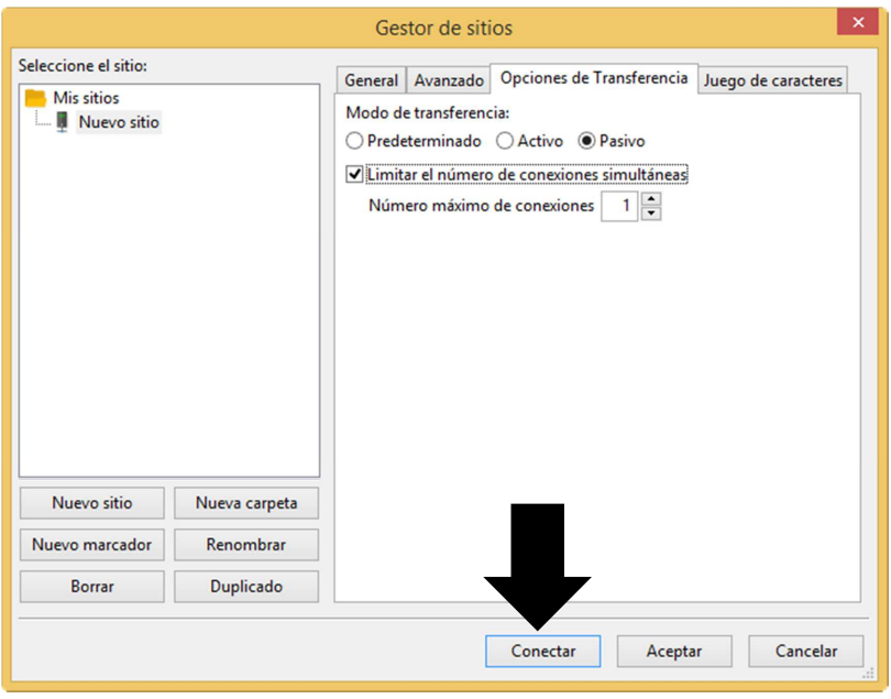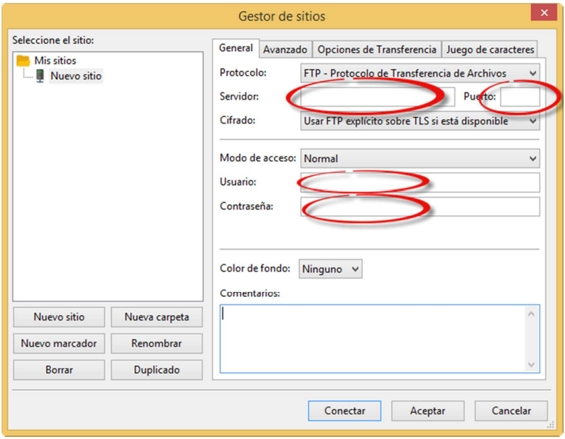 Se abrirá una ventana donde podrás crear y administrar tus conexiones FTP.