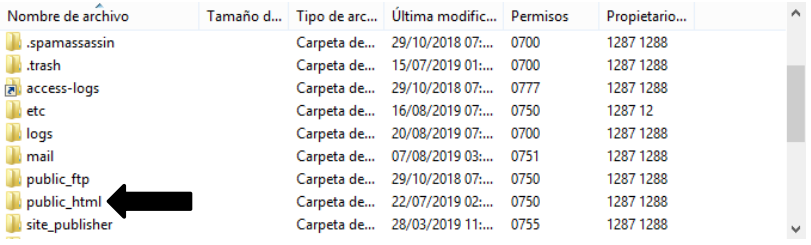 Los archivos de tu página web deben subirse dentro de la carpeta public_html. Esta es la carpeta principal donde se alojan los archivos visibles desde tu dominio.