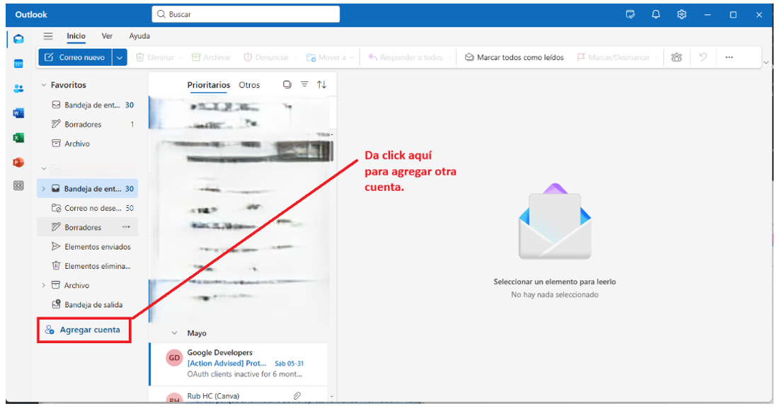 A continuación, se muestran algunas capturas de cómo se ve Outlook una vez finalizada la configuración.