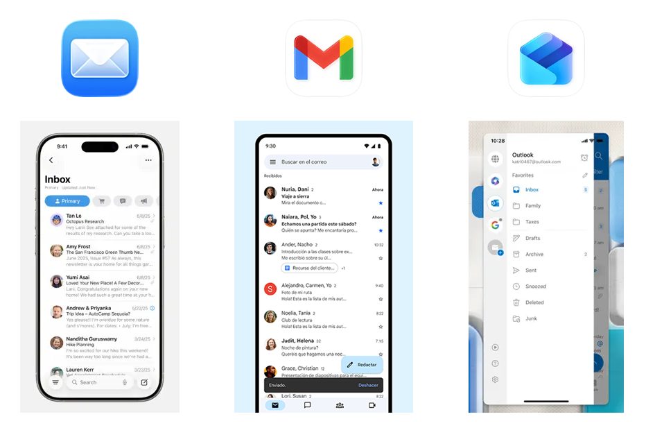 Viene con el iPhone. Es simple, segura y funciona perfectamente con cuentas personalizadas (IMAP/POP3). Ideal para quien busca algo sencillo y sin anuncios.